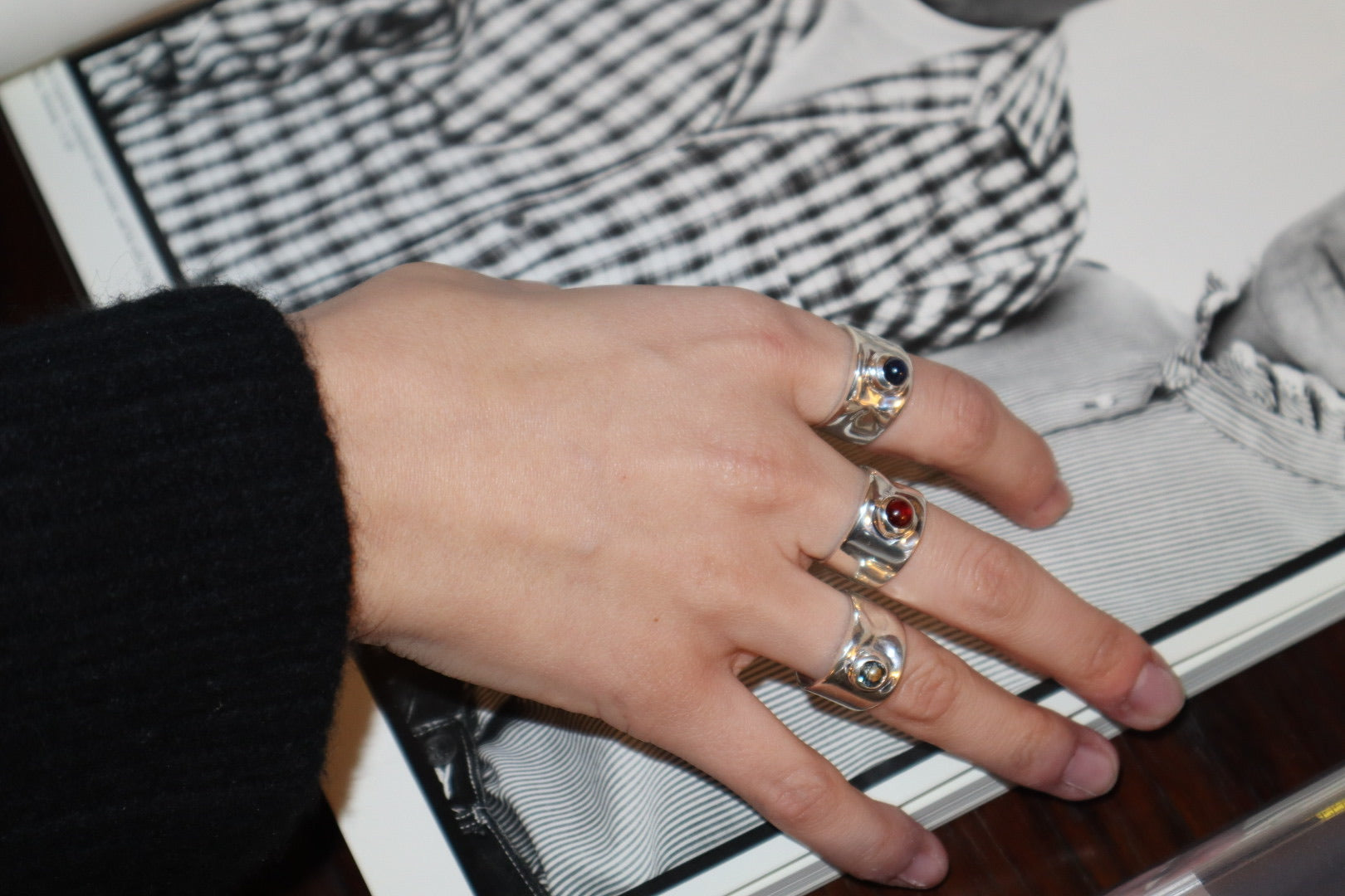 Sterling silver with cabochon ruby